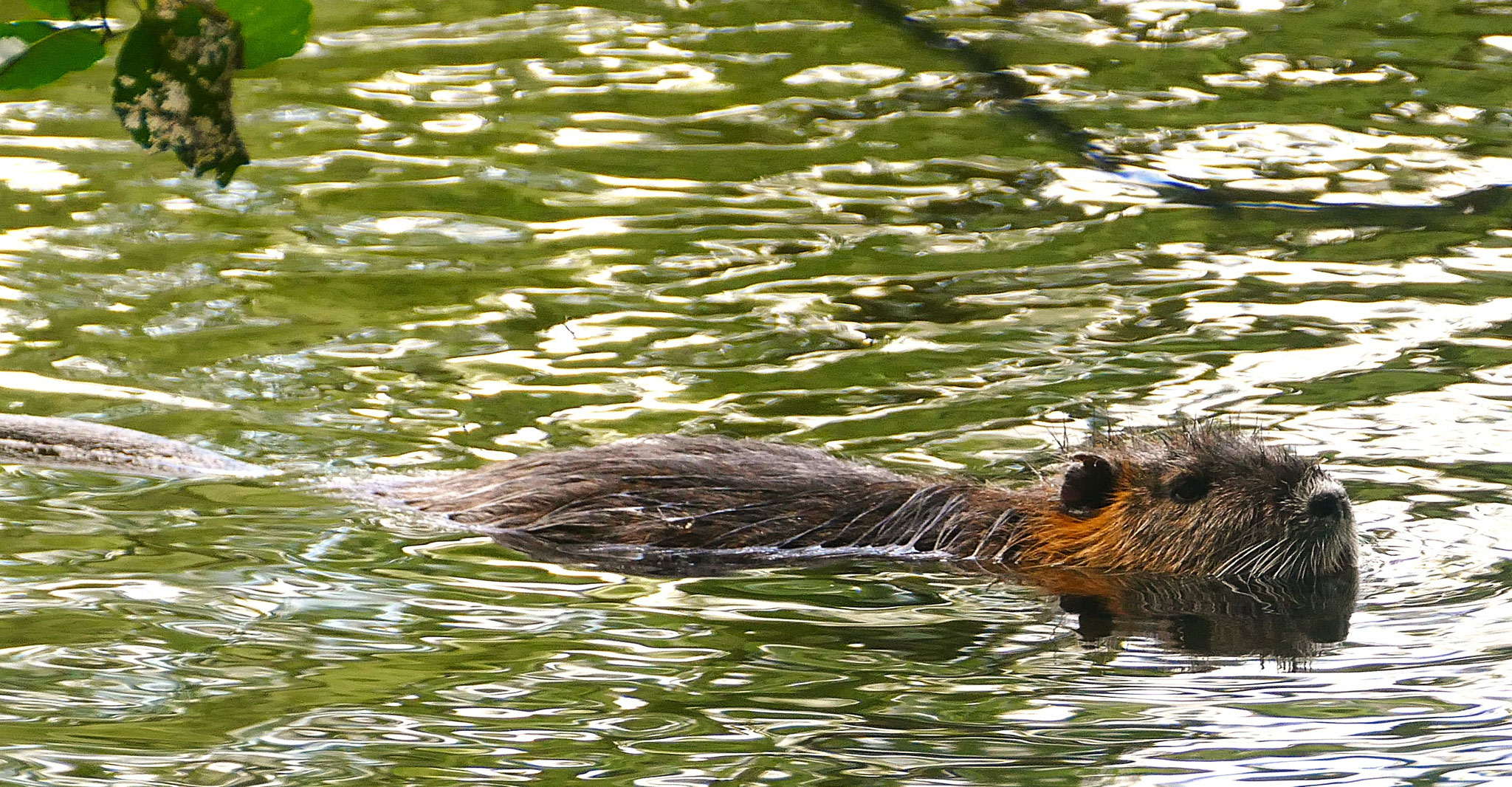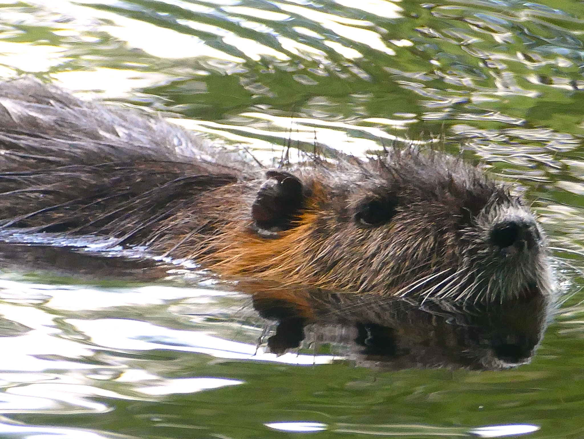 Gesehen habe ich auch die Nutria. Es sind zwar zwei dort (gewesen), da ich aber immer nur einen gesehen und aufgenommen habe, kann ich nicht direkt auf die Anwesenheit von zwei Exemplaren schließen (Spaziergänger meinten, sie hätten ein Nutriapärchen mit Nachwuchs dort gesehen. Das wäre zwar schön für mich, aber erst möchte ich die Großfamilie mal gesehen haben - und natürlich fotografieren.) Zwischenzeitlich hat sich unsere Zeitung auch der Nutrias angenommen. Nur - die Nutrias können z.B. an Deichen durch die Bauten Schäden anrichten - also wie immer, wohl Licht ist, ist auch Schatten.